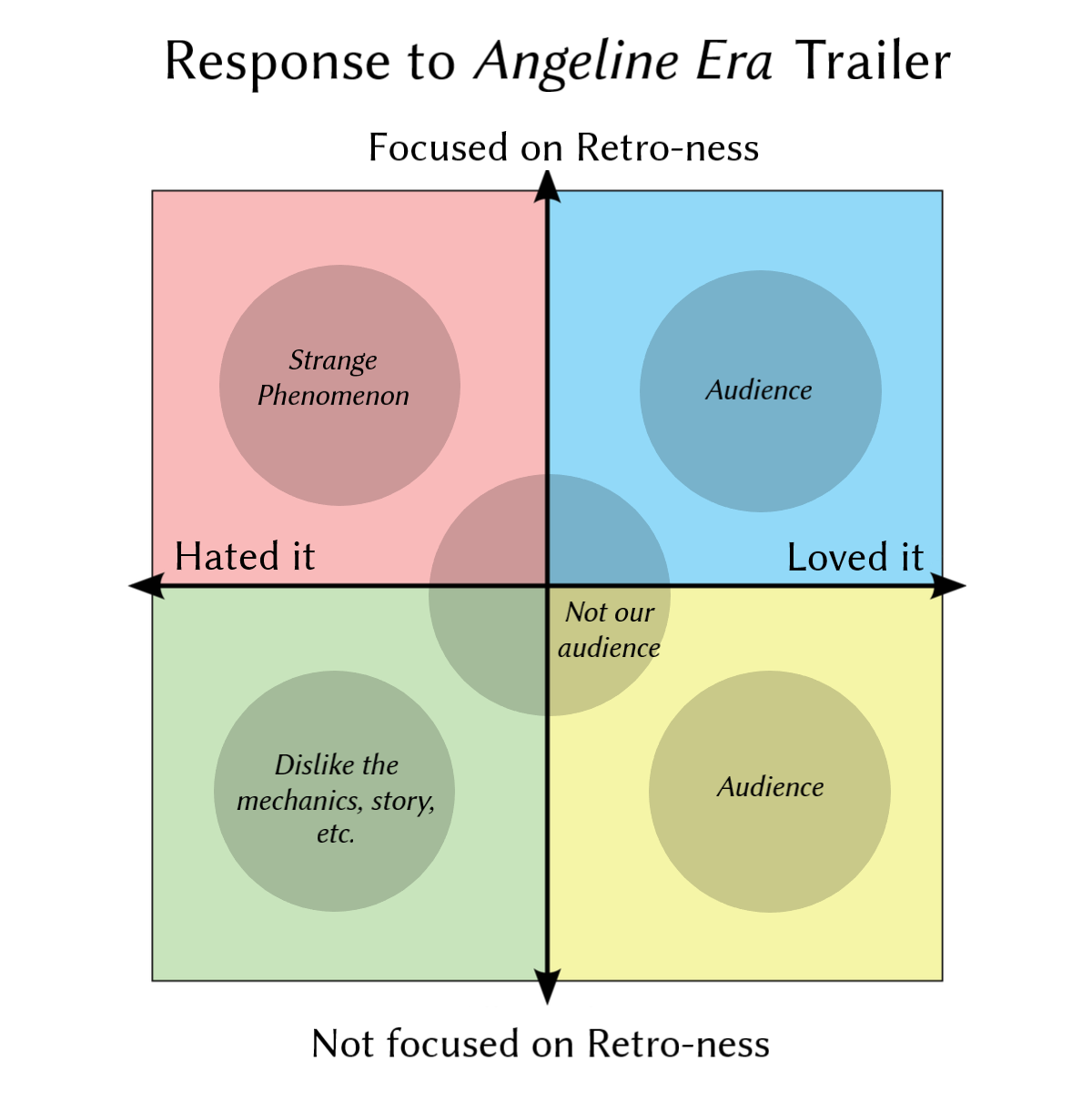It’s announcement season for me again - last week, we revealed our next game, Angeline Era, a 3D action game with visuals partially inspired by older generations of 3D games. The reception was very positive! But there were also some interesting negative comments and patterns (hence this post.) First, the trailer, if you haven’t seen it.